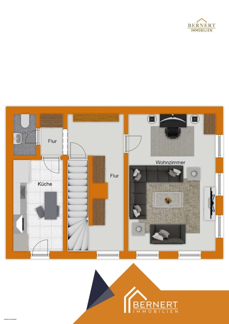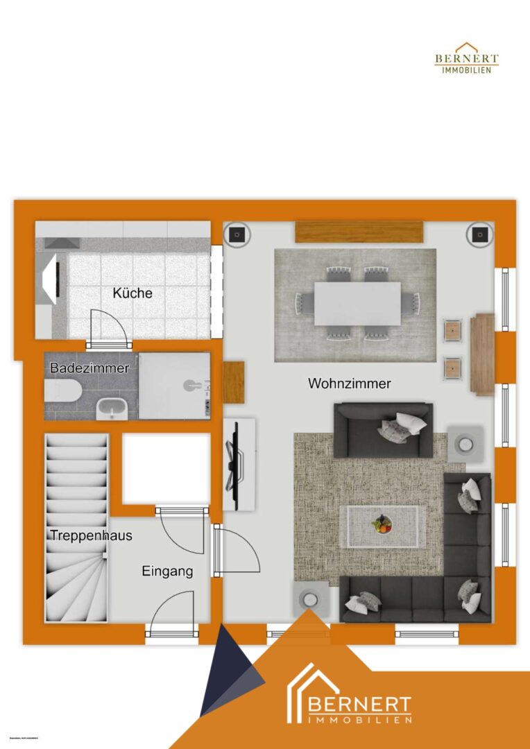 In der Maisonette Wohnung im Obergeschoss erwartet Sie ein helles, freundliches Wohnzimmer, das durch seine offene Gestaltung zum Verweilen und Wohlfühlen einlädt. Große Fenster sorgen für viel Tageslicht und schaffen eine angenehme Wohnatmosphäre.