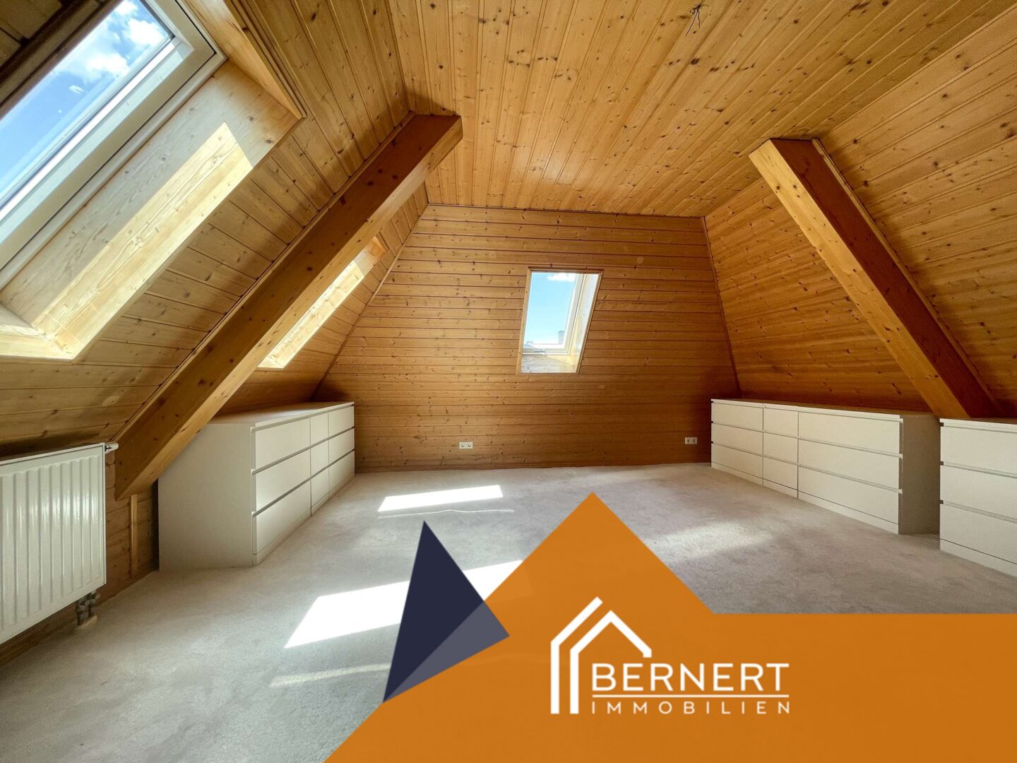 Das Dachgeschoss beherbergt ein ruhiges Schlafzimmer sowie ein geräumiges Badezimmer mit Badewanne und Dusche – perfekt zum Entspannen am Abend.