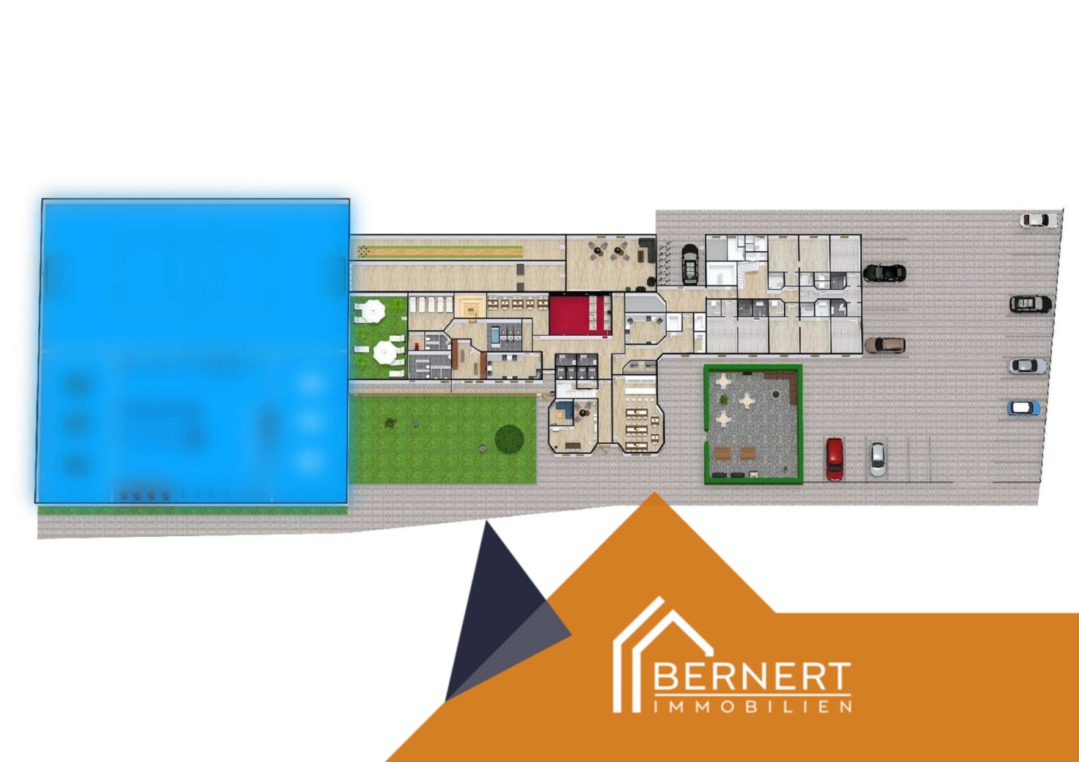 Im Erdgeschoss stehen zwei großzügige Räume zur Verfügung, die sich hervorragend für gemeinschaftliche Aktivitäten und gemeinsames Speisen eignen. Ergänzt wird dieser Bereich durch eine voll ausgestattete Großküche mit drei Kühlräumen, die eine professionelle Versorgung sicherstellt. Für Erholung und Freizeit sorgt ein ansprechender Wellnessbereich mit zwei Saunen, Tauchbecken und Ruheräumen, während die Kegelbahnanlage mit drei Bahnen und einer integrierten Bar das Freizeitangebot ideal ergänzt. Darüber hinaus befinden sich im Erdgeschoss diverse Wirtschaftsräume, eine Rezeption sowie ein Büro.
