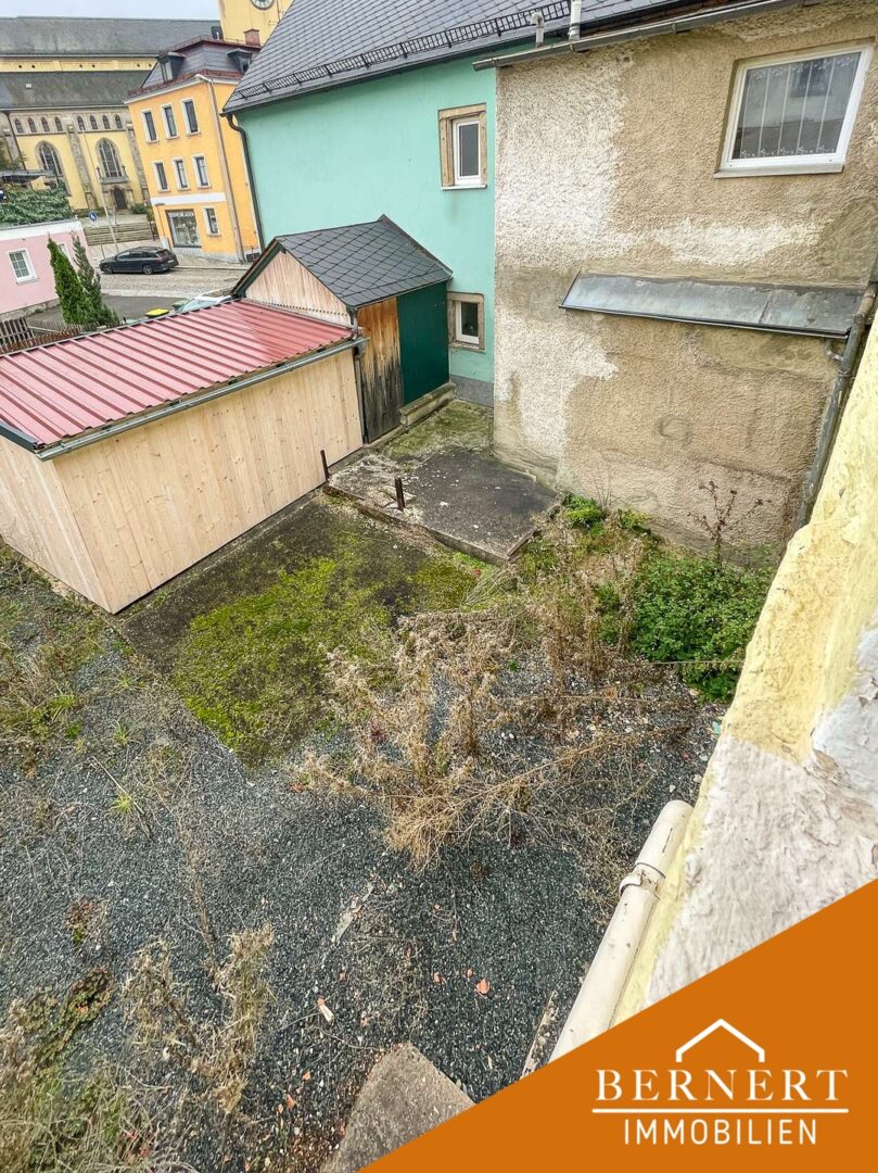 Hinter dem Haus befindet sich eine Freifläche von ca. 100 m² mit Nebengebäude, die man als Garten umgestalten kann.