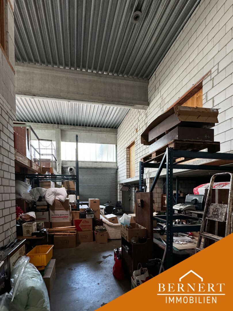 Das große elektrische Hoftor bietet die Zufahrt zum Gewerbe im Erdgeschoss, durch den großen Hof ist eine Anlieferung hier problemlos möglich. Im Erdgeschoss gelangen Sie über verschiedene Türen und Tore auf die Gewerbeflächen. Diese werden aktuell als Lager/ Werkstatt und Büro genutzt, und verfügen über eine Fläche von 730 m². Zudem gibt es noch Garagen mit einer Fläche von 120 m². Diese können Sie individuell nutzen. Auch Parkplätze für Kunden oder Mitarbeiter sind vor der Türe in einer Vielzahl vorhanden.
