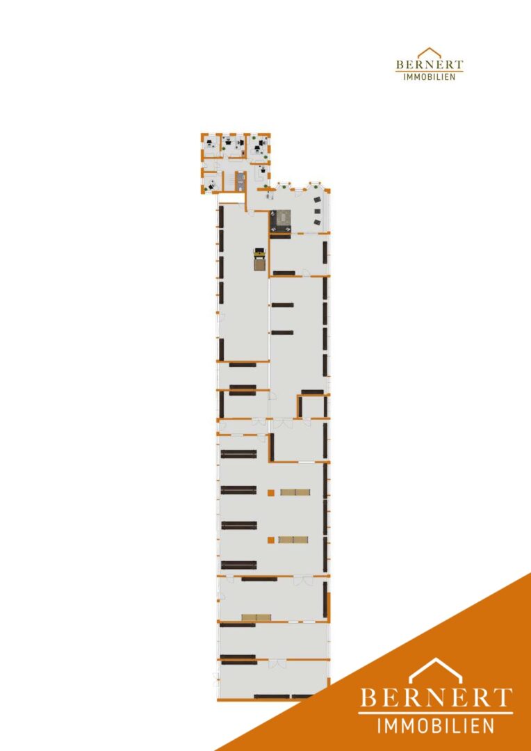 Im Anschluss an das Verwaltungsgebäude gelangen Sie in die ehemalige Produktion bzw. Gewerbehallen. Diese verfügen über weitere 1777,44 m². Durch den großen Hof, und Laderampen sind Anlieferungen auch mit großen Fahrzeugen möglich.