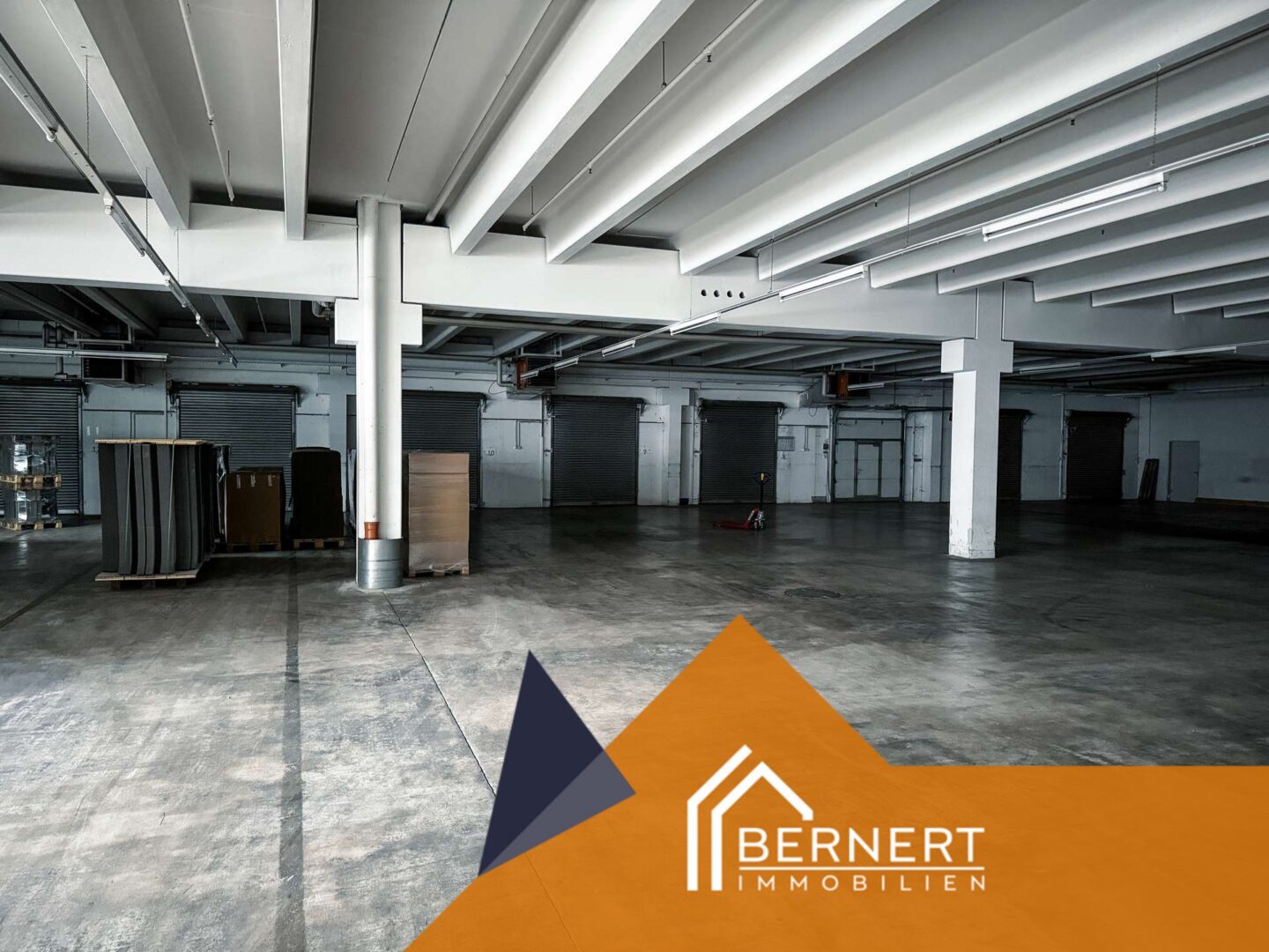 Die gesamte Fläche erstreckt sich über zwei Etagen. Das Objekt verfügt über acht Überladebrücken und weitere Rolltore, welche eine reibungslose Be- und Entladung in allen Hallenbereichen ermöglichen. Die Halle verfügt über eine Raumhöhe von 4,75 Metern. Die Traglast des Bodens beträgt bis zu 5 Tonnen. Auch die Stromversorgung ist für einen Gewerbebetrieb ausgelegt.