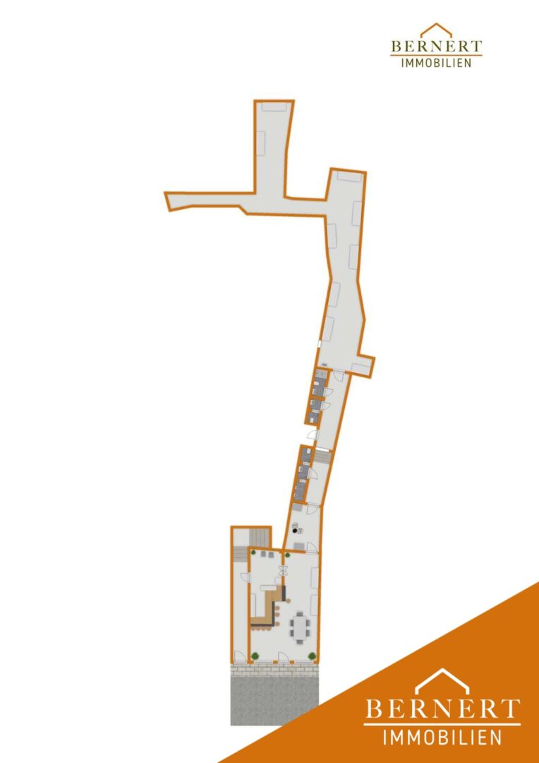 Die Gewerbeeinheit im Erdgeschoss überzeugt durch ihre hervorragende Lage und ihre flexiblen Nutzungsmöglichkeiten. Ob als stilvolles Ladengeschäft mit besonderem Flair dank des Felsenkellers, als modernes Büro mit außergewöhnlichem Ambiente oder als gemütliches Café mit historischem Touch – hier können Ihre Geschäftsideen Wirklichkeit werden.