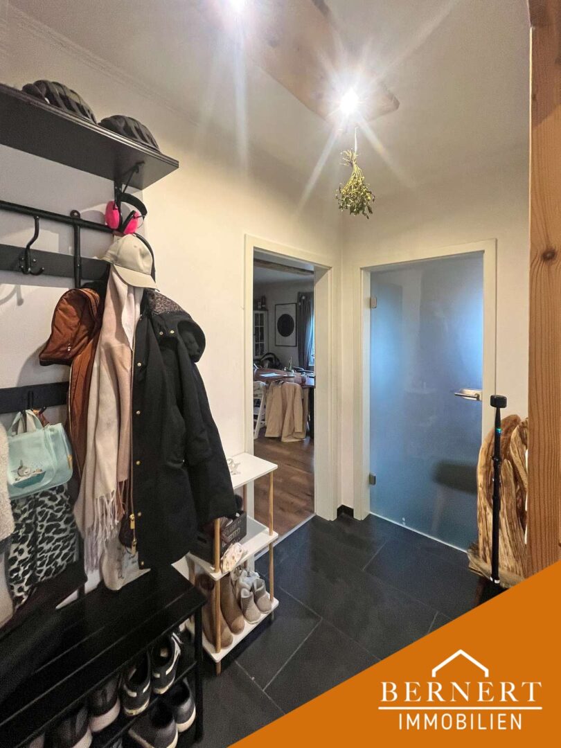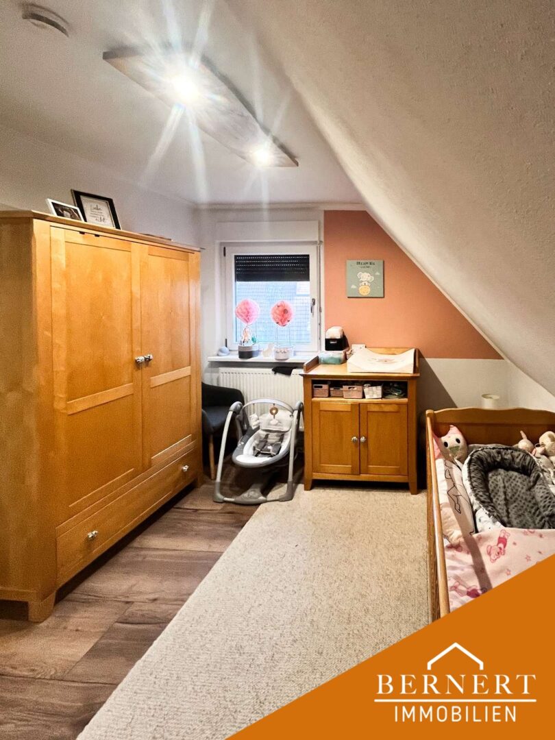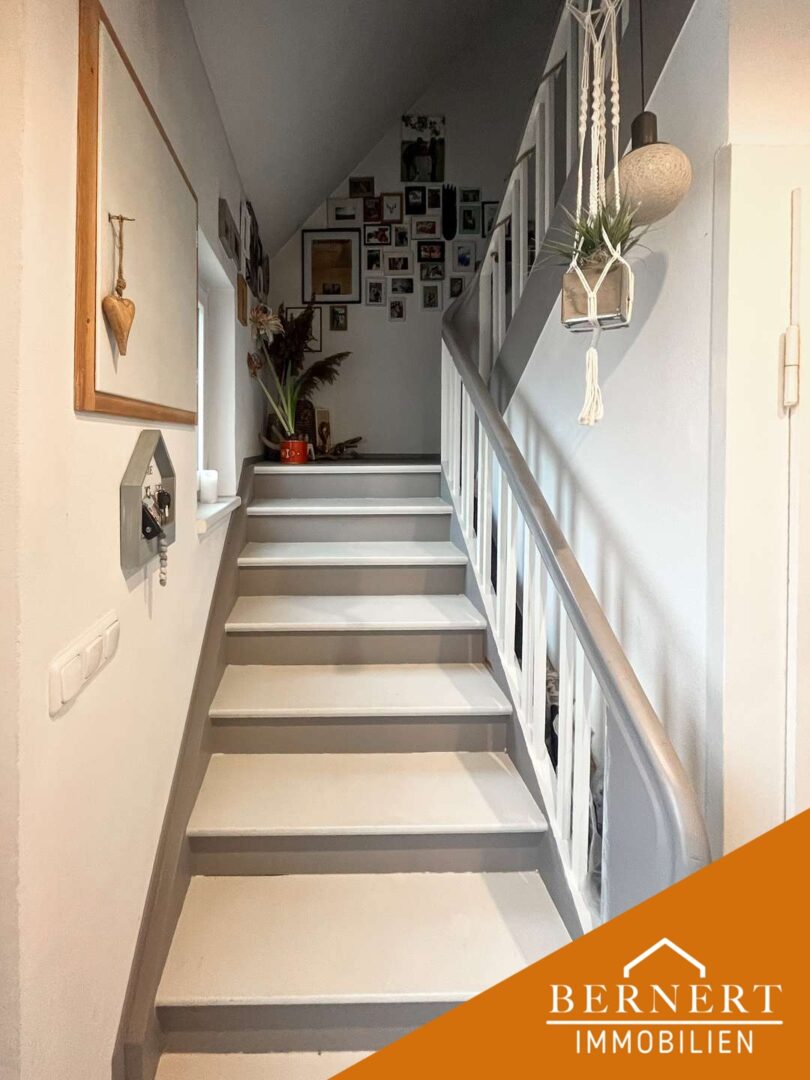 Über die sanierte Holztreppe gelangen Sie in das Obergeschoss, welches über zwei Schlafzimmer und das Badezimmer verfügt. Ob Schlafzimmer, Büro oder Kinderzimmer, die Räume lassen sich vielfältig nutzen. Hier befindet sich auch das Hauptbadezimmer, dieses lässt keine Wünsche offen und wurde im Design zeitlos gestaltet. Beide Zimmer verfügen über Nischen, die sich ideal als Ankleidebereich nutzen lassen. Ein Spitzboden bietet weitere Abstellfläche.
