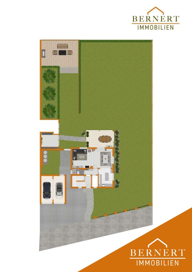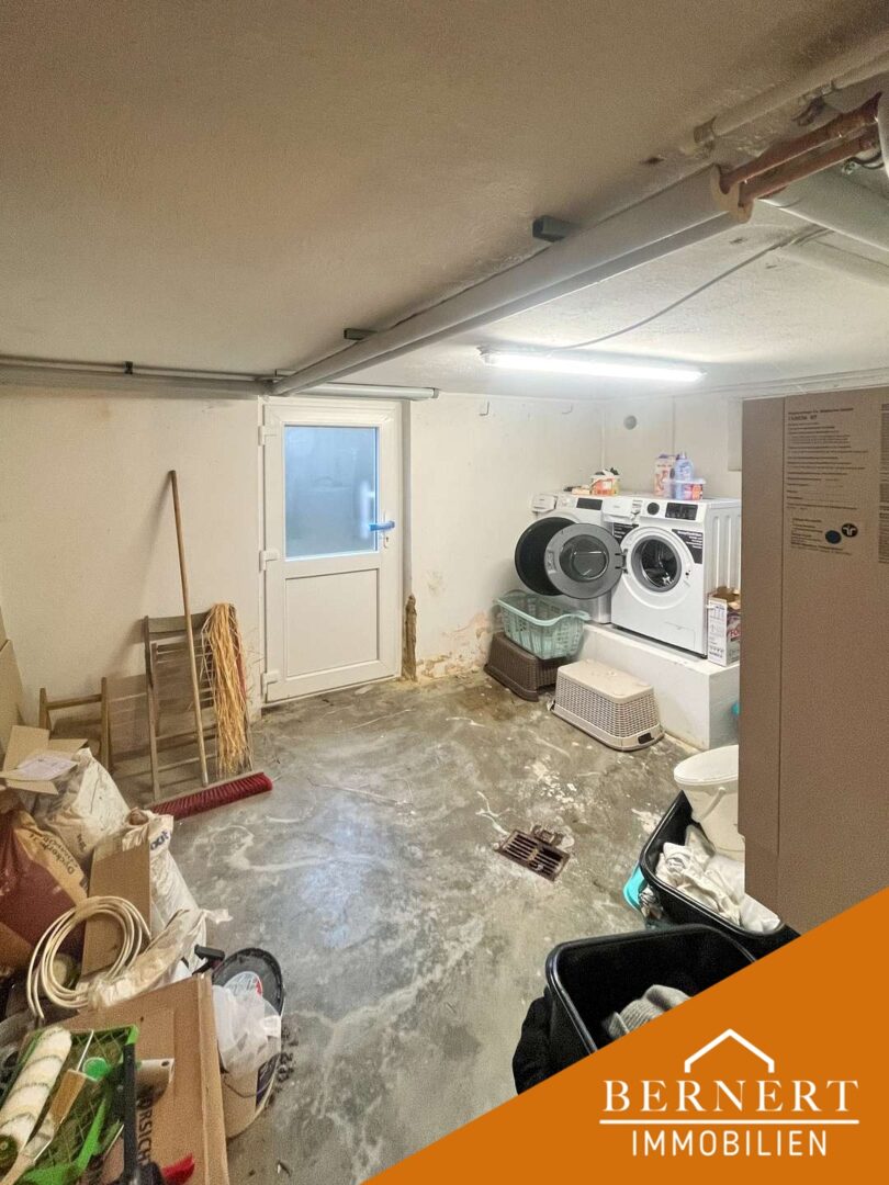 Vor dem Haus befindet sich die Doppelgarage mit Sektionaltoren. Der großzügige Garten bietet ausreichend Fläche für Alltag und Freizeit. Das Haus ist zudem voll unterkellert - hier befindet sich eine Waschküche und weitere Kellerräume.